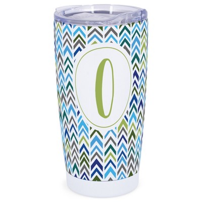 Elanze Designs O Monogram Herringbone Arrows Wrap-Around Design 20 Ounce Stainless Steel On-The-Go Coffee Mug, Thermal Travel Tumbler with Leak