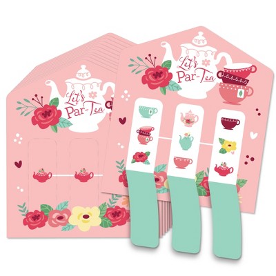 Big Dot of Happiness Floral Let's Par-Tea - Garden Tea Party Game Pickle Cards - Pull Tabs 3-in-a-Row - Set of 12