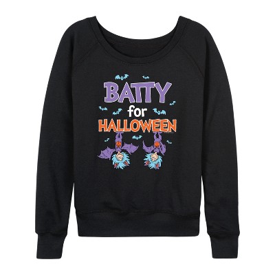 Women's - Dr. Seuss - Batty For Halloween Thing 1 and Thing 2 Lightweight French Terry Wide Neck Long Sleeve Graphic Shirt