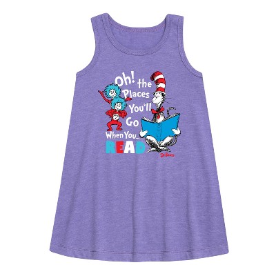 Girls' - Dr. Seuss - Oh Places Youll Go When You Read Graphic Sleeveless Aline Dress