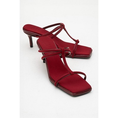Mocha Burgundy Square‑Toe Thin‑Strap Heel Sandal (Women) | Prologue Shoes