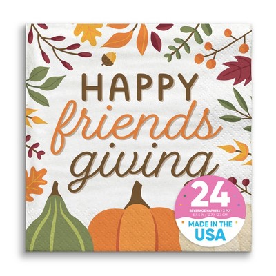 Big Dot of Happiness Fall Friends Thanksgiving Napkins, Friendsgiving Party Decor, White 3-Ply Paper Beverage Cocktail Napkins - 24 Count