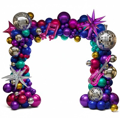 Itopfox 130pcs Chrome Disco Balloon Garland Arch Kit Metallic Purple Teal Red Hot Pink Blue Foil Balloons for 80s 90s Party Decor