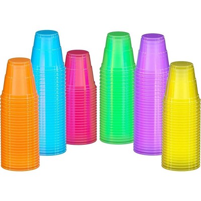 Exquisite Food Safe Blacklight Glow in the Dark Disposable Plastic Party Glow Cups - Assorted Neon Colors-12 Ounce