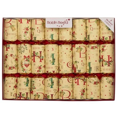 Robin Reed English Holiday Christmas Crackers – Holiday Time Pattern, Set of 8, 10" Each, Ages 13+