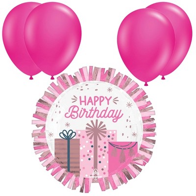 LoonBalloon 24 Inch Pastel Pink Gift Birthday Balloon with 4 Pink Latex Balloons- Festive & Fun