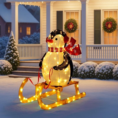 NAYSAYE 2.2FT Penguin on Sleigh Holiday Decoration Festive Tinsel Ornament for Front Yard and Porch, Multicolor, 26"*13.8"*26.8"