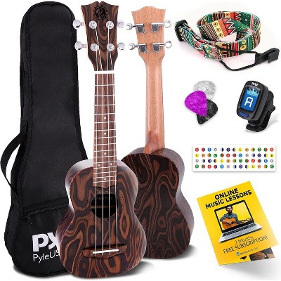 Pyle PUKT5580 21" Wooden Soprano Ukulele Beginner Kit with Digital Tuner, Strap, Finger Guide, Picks & Gig Bag – Aquila Strings