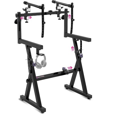 Liquid Stands Dual Piano Keyboard Stand w/ 2nd Tier - Z Style Adjustable & Portable 2 Tier Heavy Duty Stand for Digital Keyboards for 54-88 Key Pianos
