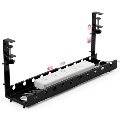 Liquid Stands Extendable Under Desk Cable Management Tray - 22.5' Metal Cable Management Under Desk with Clamp Cable Tray Cord Holder for Piano Stand