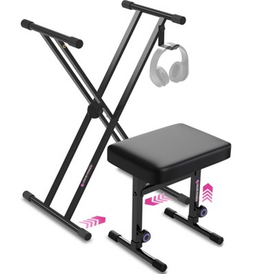 Liquid Stands Pink Piano Keyboard Stand and Bench Set - Portable Sturdy Digital Piano Stand for 54-88 Key Pianos & Adjustable Piano Bench Chair Stool