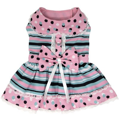 Doggie Design Dots & Stripes Harness Dress - Pink & Teal