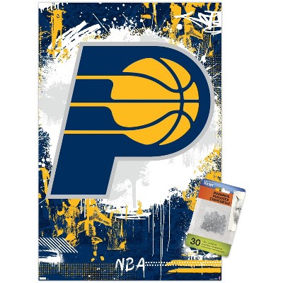 Trends International NBA Indiana Pacers - Maximalist Logo 23 Unframed Wall Poster Print Clear Push Pins Bundle 14.725" x 22.375"