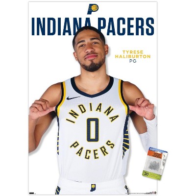 Trends International NBA Indiana Pacers - Tyrese Haliburton Feature Series 24 Unframed Wall Poster Print Clear Push Pins Bundle 22.375" x 34"
