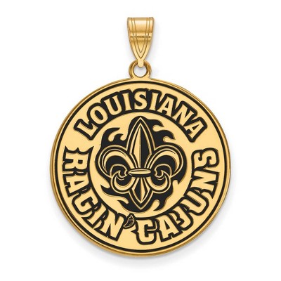 Black Bow Jewelry 14k Yellow Gold Plated Sterling Silver Louisiana Lafayette Ragin' Cajuns NCAA Disc Pendant