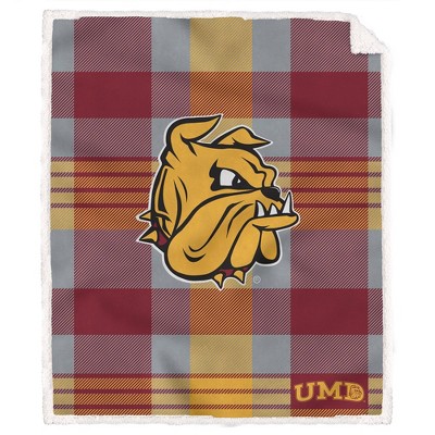 NCAA Minnesota Duluth Bulldogs Plaid Steel Royal Plush Faux Shearling Blanket