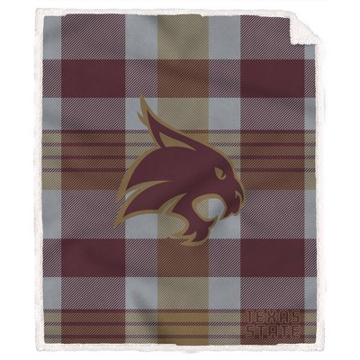 NCAA Texas State Bobcats Plaid Steel Royal Plush Faux Shearling Blanket