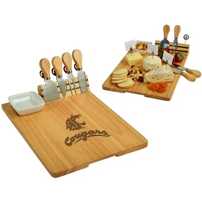 NCAA Washington State Cougars Hardwood Charcuterie Board with Cheese Knives & Ceramic Dish