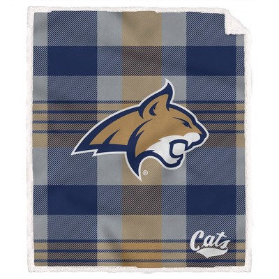 NCAA Montana State Bobcats Plaid Steel Royal Plush Faux Shearling Blanket