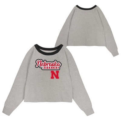 NCAA Nebraska Cornhuskers Girls' Crew Neck Fleece Gray Sweatshirt