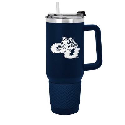 NCAA Gonzaga Bulldogs 40oz Colossus Travel Mug: Stainless Steel, Dual Lid Openings, Silicone Grip, Includes Straw