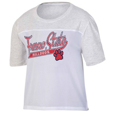 NCAA Fresno State Bulldogs Women's White Mesh Yoke T-Shirt