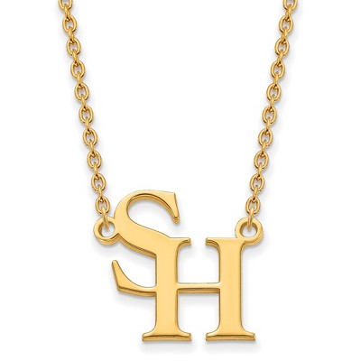 Black Bow Jewelry 14k Yellow Gold Plated Sterling Silver Sam Houston State Bearkats NCAA Large Logo Necklace 18 Inch