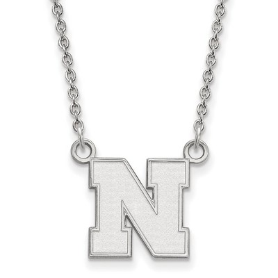 Black Bow Jewelry Sterling Silver Nebraska Cornhuskers NCAA Small Logo Necklace 18 Inch