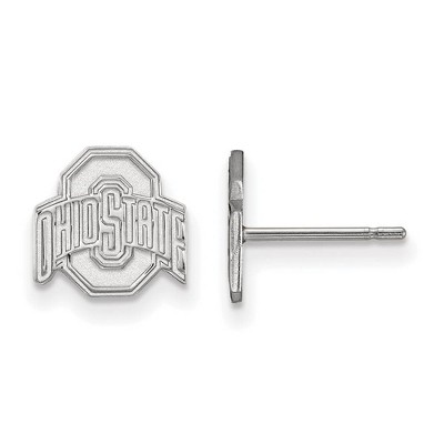 Black Bow Jewelry 10k White Gold Ohio State Buckeyes NCAA Extra Small Logo Post Earrings