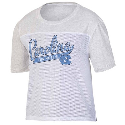 NCAA North Carolina Tar Heels Women's White Mesh Yoke T-Shirt