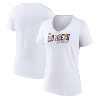 NCAA LSU Tigers Women's White V-Neck T-Shirt