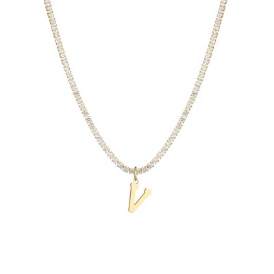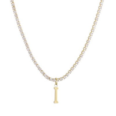 Adornia 14k Gold Plated Tennis Necklace with Initial Charm