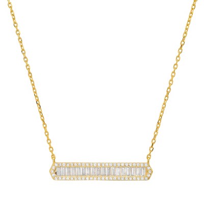 Sterling Silver Baguette-cut CZ Bar Necklace