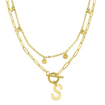Adornia Tarnish Resistant 14k Gold Plated Pave Crystal Initial Disc Paperclip Necklace