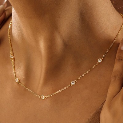 SmallRig 14K Gold Plated 3mm Simulated Diamond Tennis Necklace for Women, Chunky Long Sizes 16 & 18 Inch
