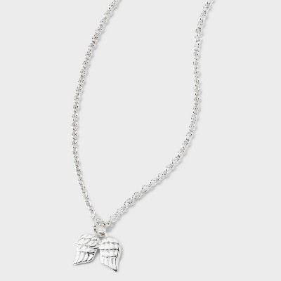Silver Plated Angel Wings Pendant Necklace - Silver