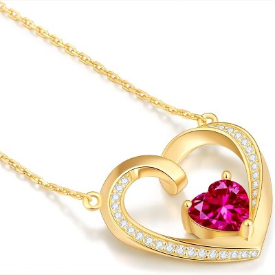 SmallRig Birthstone Heart Necklace with Lab-Grown Moissanite, 14K Gold/Silver
