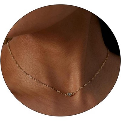 SmallRig Dainty CZ Solitaire Pendant Necklace, 14K Gold Plated Bridal Jewelry Gift
