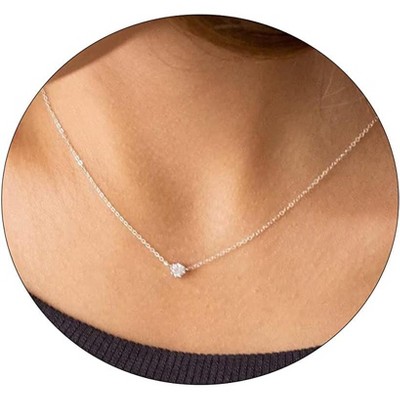 SmallRig Dainty CZ Solitaire Pendant Necklace, 14K Gold Plated Bridal Jewelry Gift