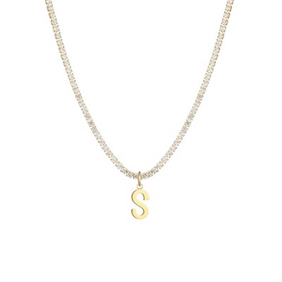 Adornia 14k Gold Plated Tennis Necklace with Initial Charm