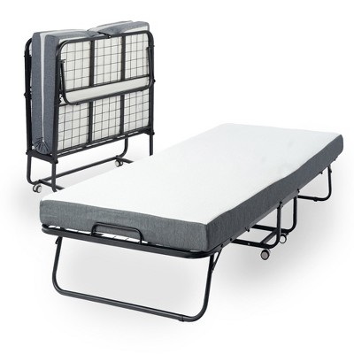 FurnitureR Folding Bed with 5-Inch Memory Foam Mattress – 75"x30" Narrow Twin Rollaway Bed Frame with Wheels, Fold Up, Sturdy Metal Construction