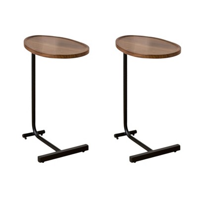 HomeRoots Set of Two Brown and Black Wood and Metal Oval End Tables