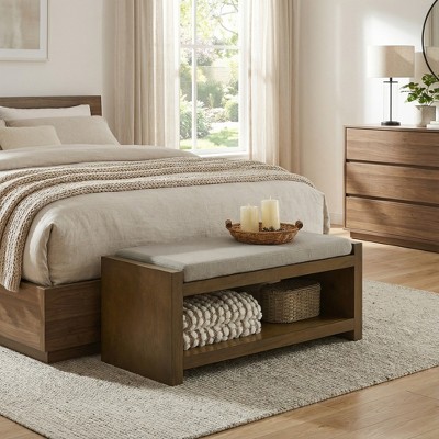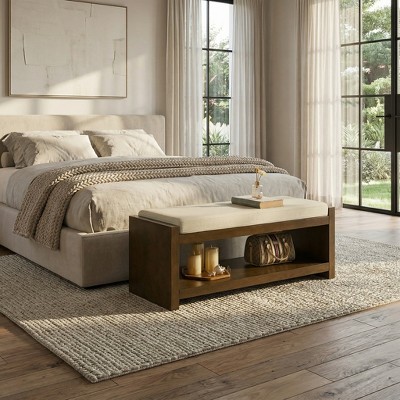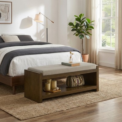 Airsurfer 47" Accent Storage Bench, Storage Bench with Removable Cushion, Lower Shelf Shoe Rack, Modern Upholstered Bedroom Bench for Bedroom