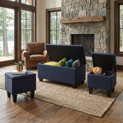 Airsurfer Set of 3 Storage Ottoman Set, Versatile Tufted Storage Ottoman Set, Home Storage Bench for Living Room, Entryway, Navy Blue