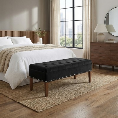 Airsurfer Large Black Velvet Bench Elegant Upholstered Bedroom Bench Footrest, Storage Seating for Bedroom Style and Storage