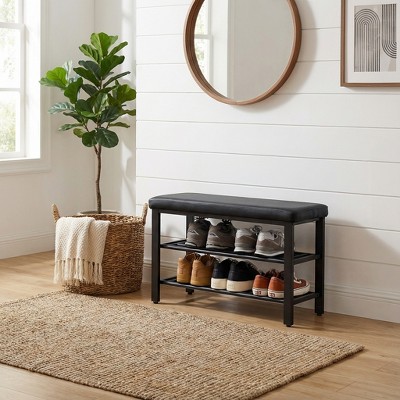 Airsurfer Shoe Storage Bench, 2-Tier Shoe Bench with PU Cushion, Shelves, Modern Storage Shoe Bench, Shoe Rack Bench for Entryway, Hallway, Black