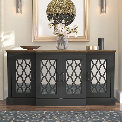 Galano Sideboard with Decorative Cut-Out Doors in Black 58.4" W × 15.7" D × 30" H