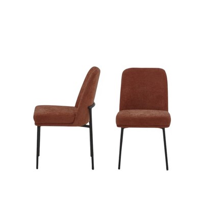 HomeRoots Set of Two Burnt Orange and Black Boucle and Wood Dining Side Chairs