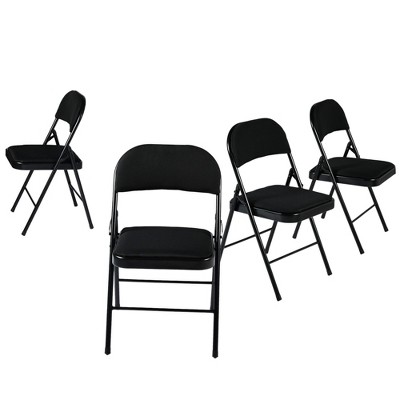 HomeRoots Set of Four Black Faux Leather and Steel Folding Chairs