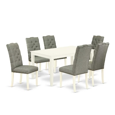 Rectangular Dining Table Set - 7 Piece Table and Chair Set - Linen White Finish